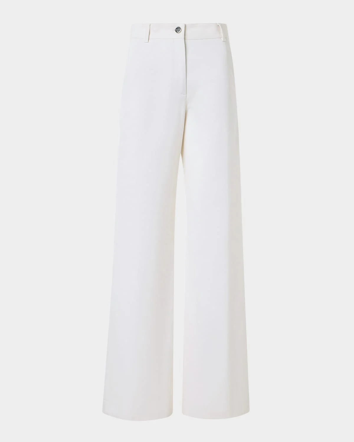 Crafted from white washed denim, the "Finnian" pants from Akris feature & nbsp;signature topstitching on the back pocket and a logo-engraved silvertone button High rise Angled side slip pockets Back patch pockets Wide legs Full length Button/zip fly; belt loops Cotton/polyurethane Lining: Cupro Dry clean Made in Romania