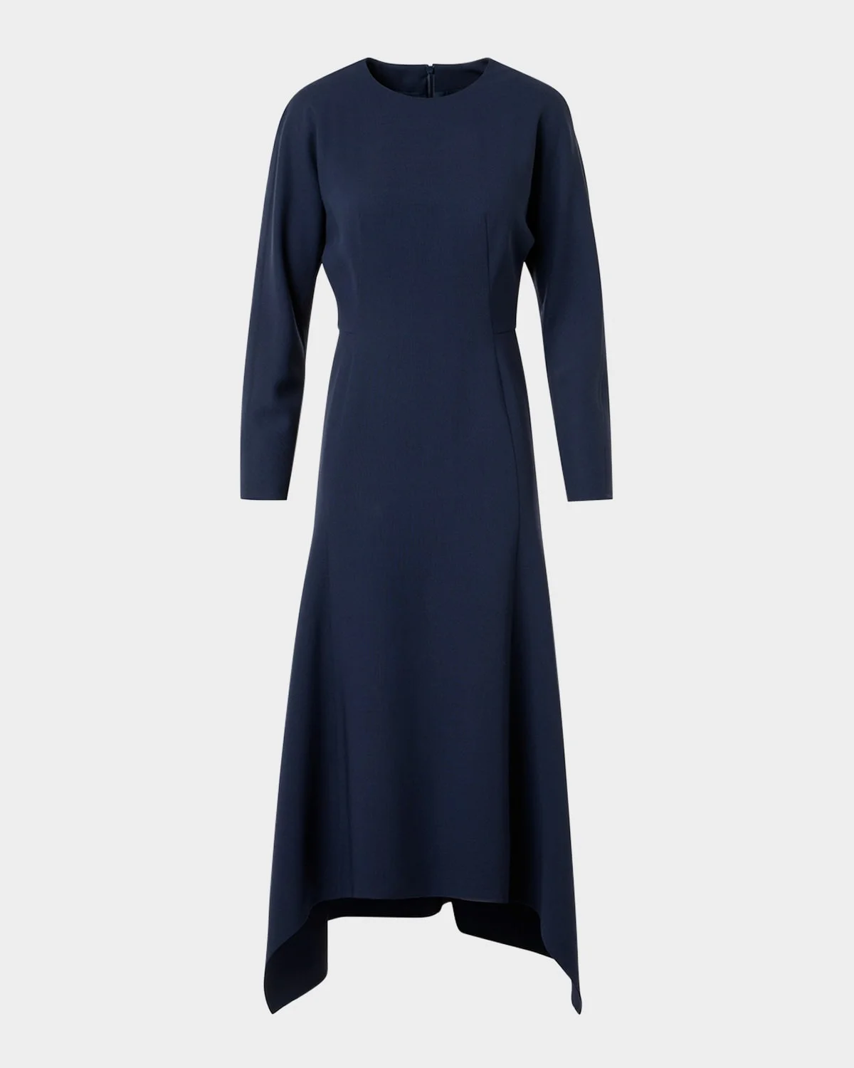A kinetic handkerchief hem brings movement to the contoured seams and defined tailoring of this Akris woolblend dress Minimalist in style, this dress provides the perfect canvas for a statement pendant or long jeweled necklace Jewel neckline Long sleeves Fitandflare silhouette Handkerchief hem falls below the knee Invisible back zip Wool/nylon Made in Switzerland