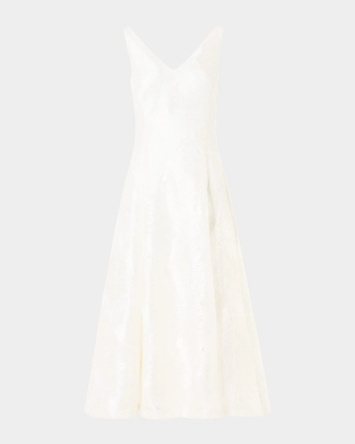 Akris lacquered & nbsp;dress, defined by & nbsp;dimensional texture and a luminous finish inspired by the sea V neckline Sleeveless Hem falls below the knee A-line silhouette Concealed back zip closure Nylon/polyamide Made in Romania