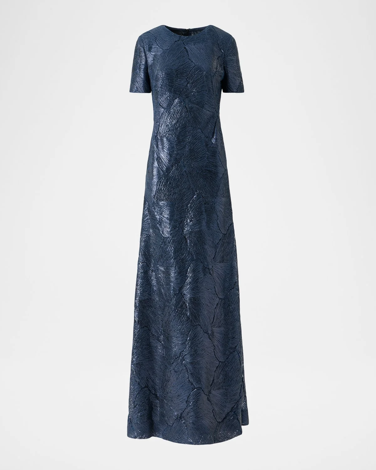 Akris gown is crafted in a & nbsp;techno lacquered sea fan lace featuring skirt godets Round & nbsp;neckline Short sleeves A-line silhouette Floor sweeping hem Invisible back zip Nylon/polyamide Lining: Silk/viscose Dry clean Made in Romania