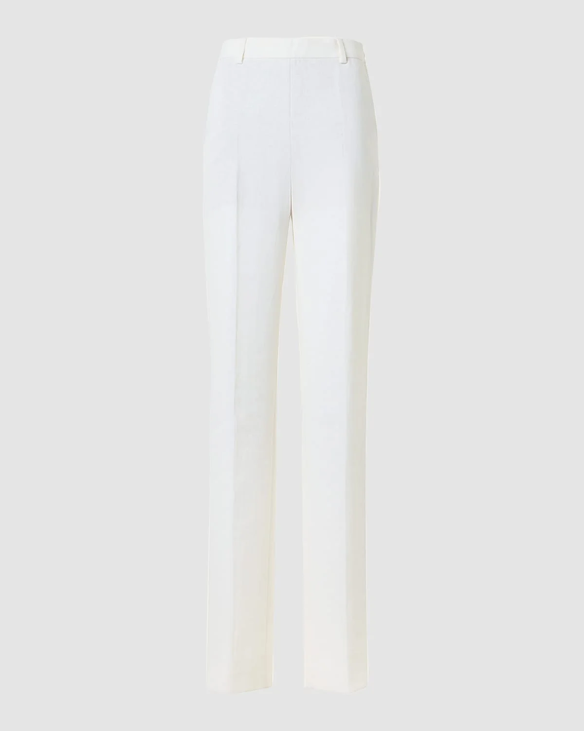 These trousers & nbsp;from Akris are crafted from linen-blend double face with pressed creases High rise Flat front Angled side slip pockets Relaxed straight legs Full length Invisible side zip/belt loops Linen/virgin wool Lining: Cupro Dry clean Made in Romania SIZE & FITModel measurements: 5 & apos;10" tallModel is wearing a US size 4/Small