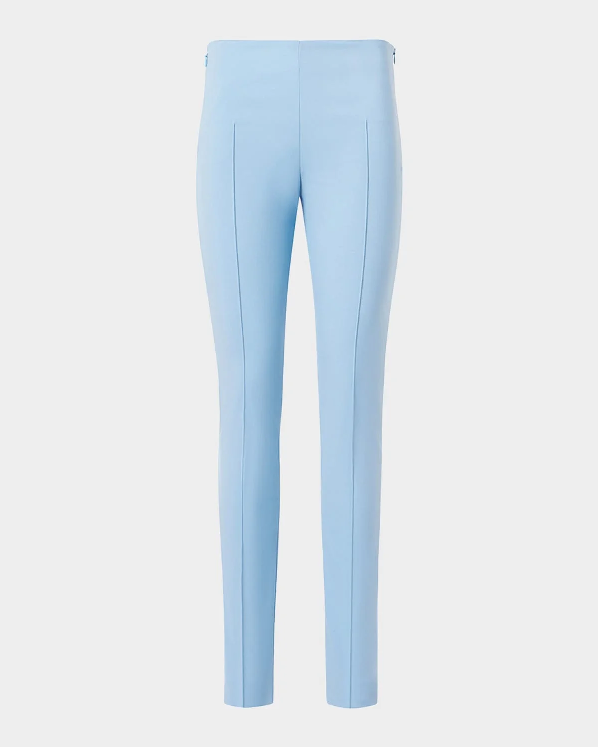 Sleek Akris "Melissa" pants with a minimalist silhouette in innovative techno stretch Front and back raised seams subtly lengthen the leg line for a sleek profile Midrise sits high on the hip Smooth, seamless waist Invisible side zip and pocket Skinny legs Ankle length Cotton/nylon/elastane Made in Romania