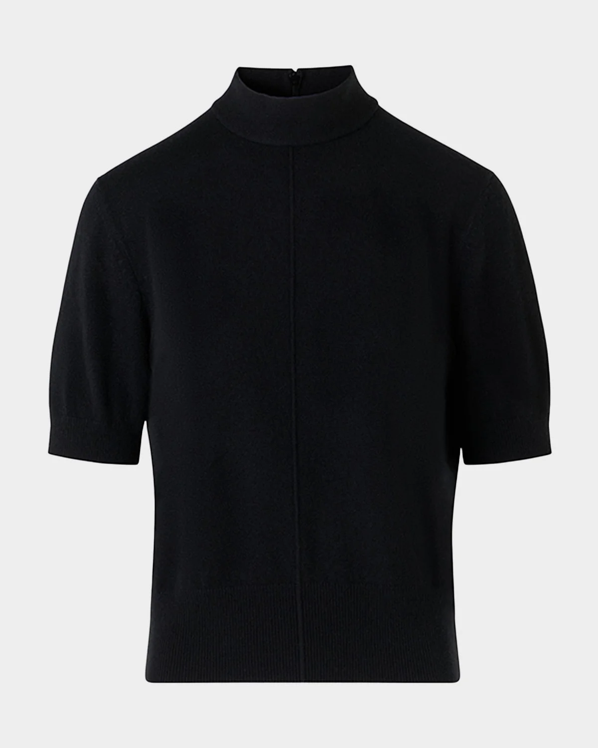 Mock-Neck Short-Sleeve Cashmere Sweater