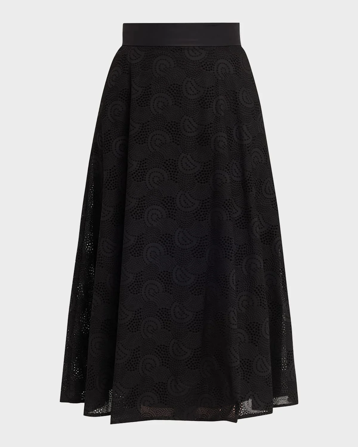 This skirt from Akris is crafted from cotton orbit broderie anglaise with an A-line silhouette High waist A-line silhouette Hem falls below the knee Invisible back zip Cotton/viscose Lining: Viscose/elastane Dry clean Made in Romania SIZE & FITModel measurements: 5 & apos;10" tallModel is wearing a US size 4/Small