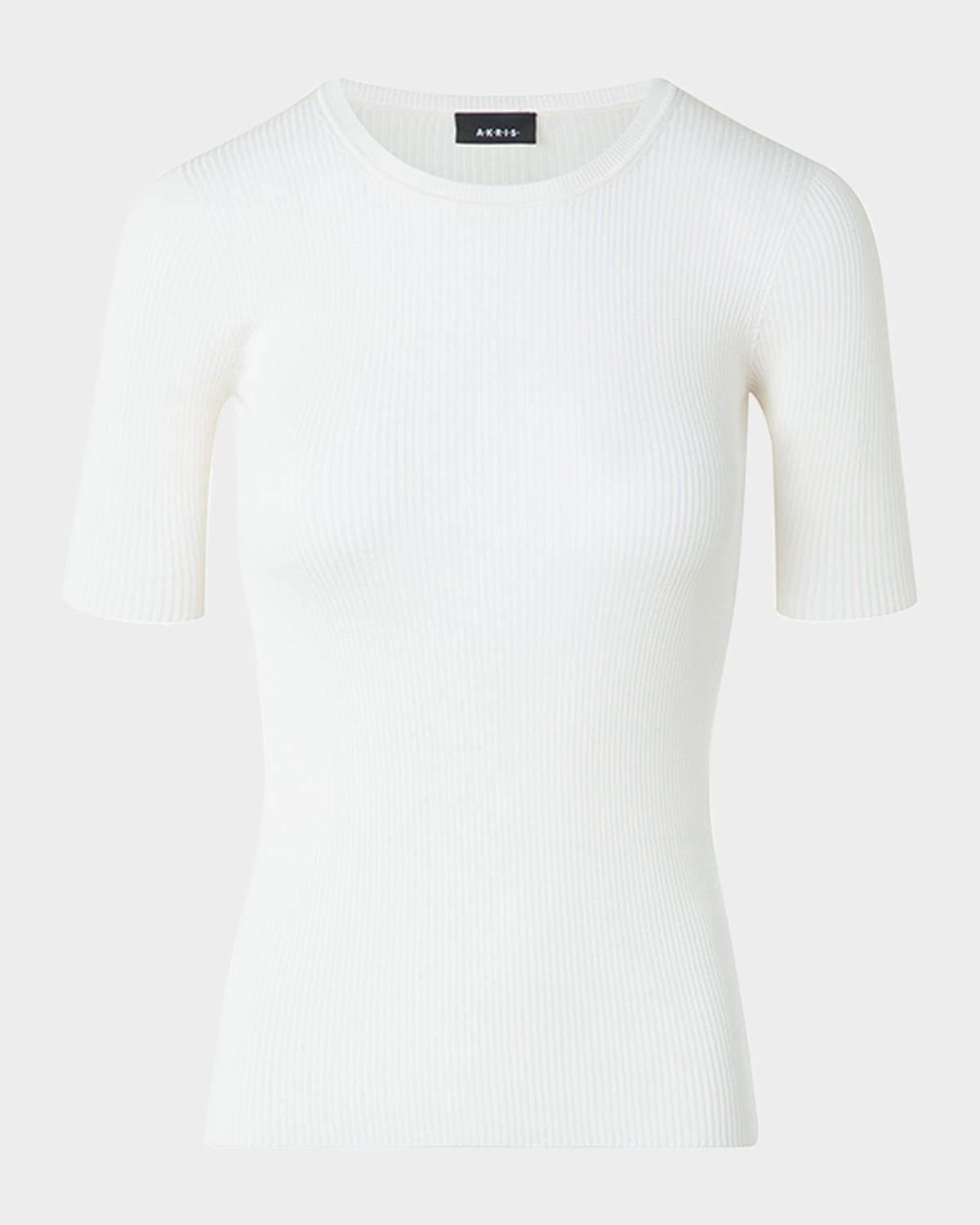 - Akris ribbed seamless sweater in silk-cotton - Crew neckline - Short sleeves - Fitted - Hem sits at the hip - Pullover style - Silk/cotton - Imported
