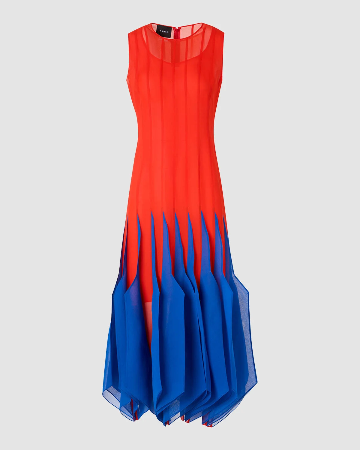 Sleeveless Panama Silk Organza Seamed Midi Dress
