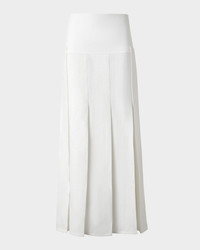 Stonewashed Linen-Wool Pleated Midi Skirt