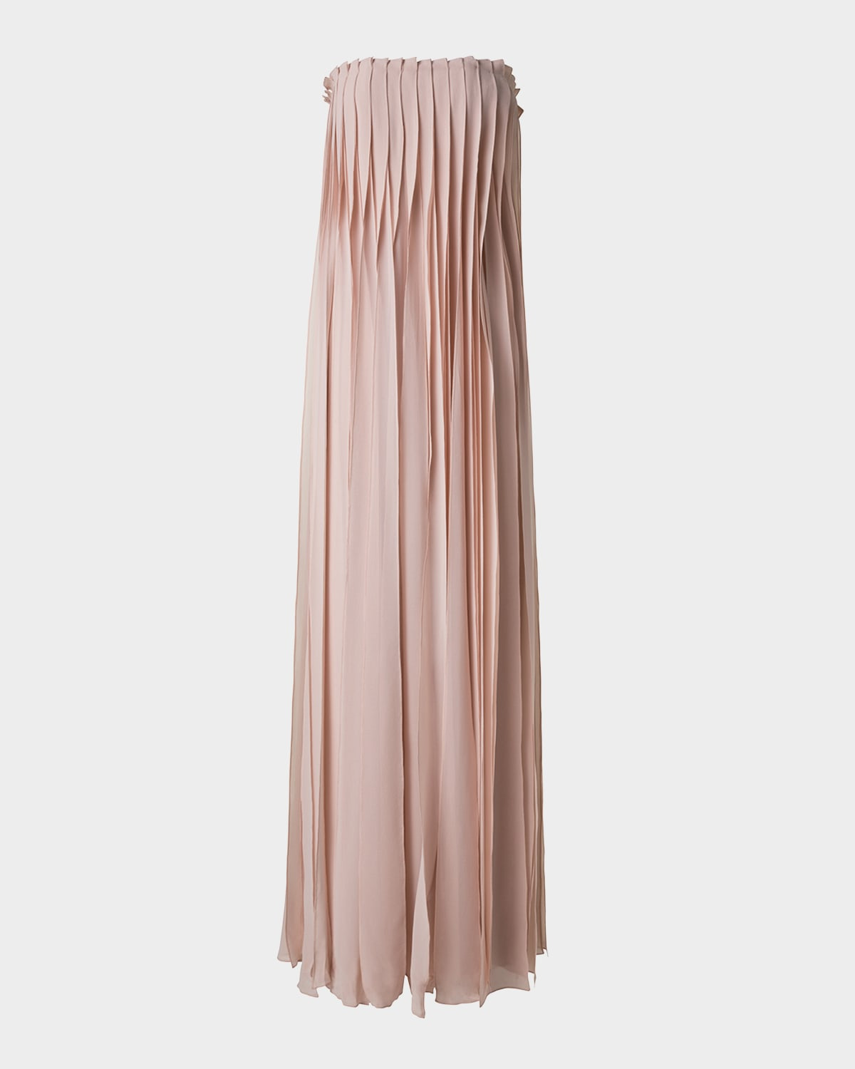 - Akris gown in silk georgette constructed with silk ribbons - Strapless neckline - Sleeveless - Full length - Column silhouette - Silk/cotton/nylon/polyamide - Dry clean - Made in Romania