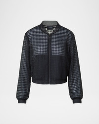 - Akris bomber jacket crafted from sheer tulle with flower grid embroidery - Baseball collar - Long sleeves - Hip length - Smocked cuffs and hem - Zip front closure - Polyester - Dry clean - Made in Romania