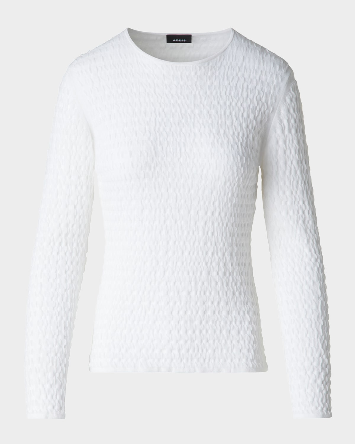 - Akris sweater in a textured knit - Crew neckline - Long sleeves - Fitted - Pullover style - Cotton/nylon/polyamide/elastane - Made in Switzerland