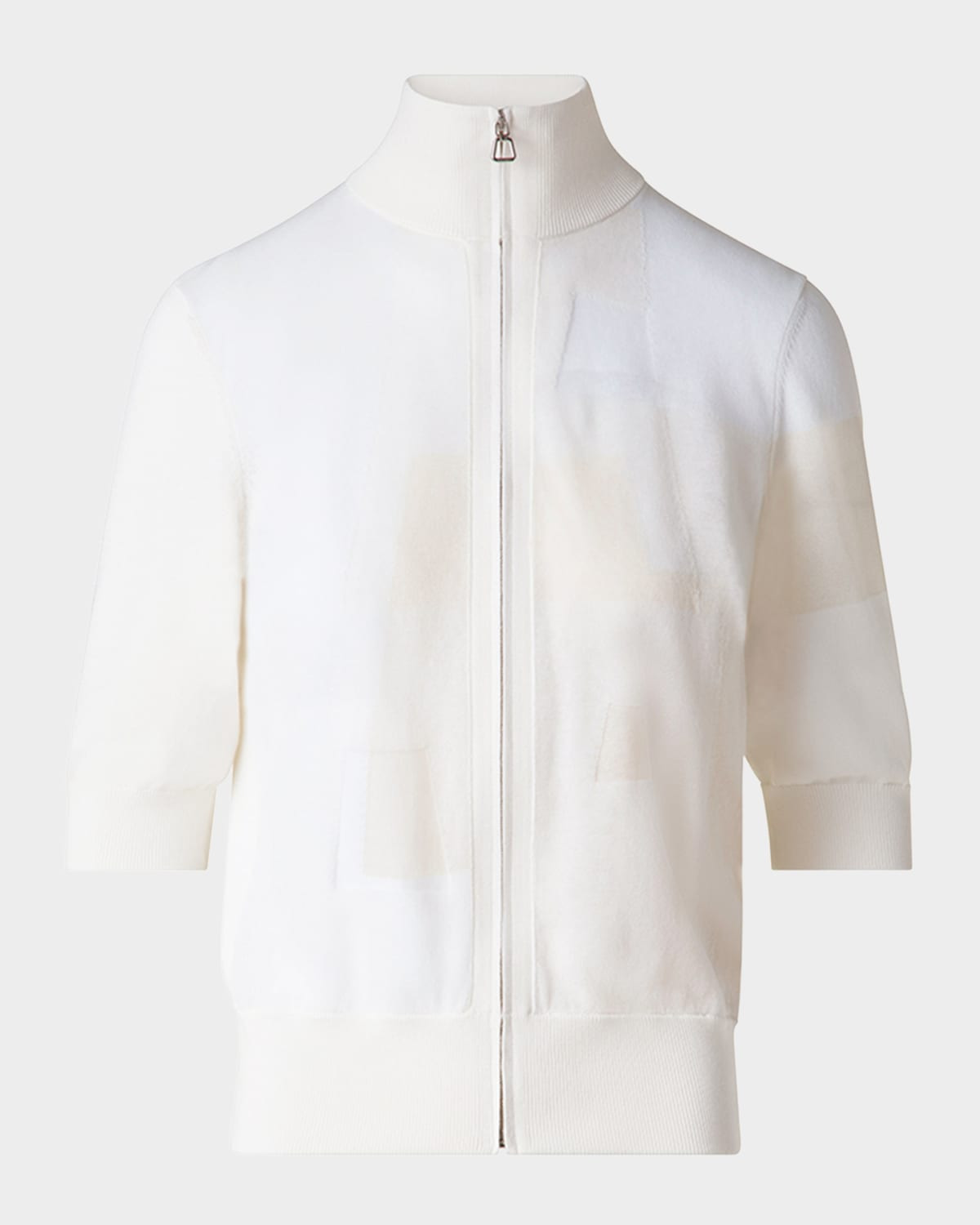 Trapeze Jacquard Elbow-Sleeve Zip Cardigan