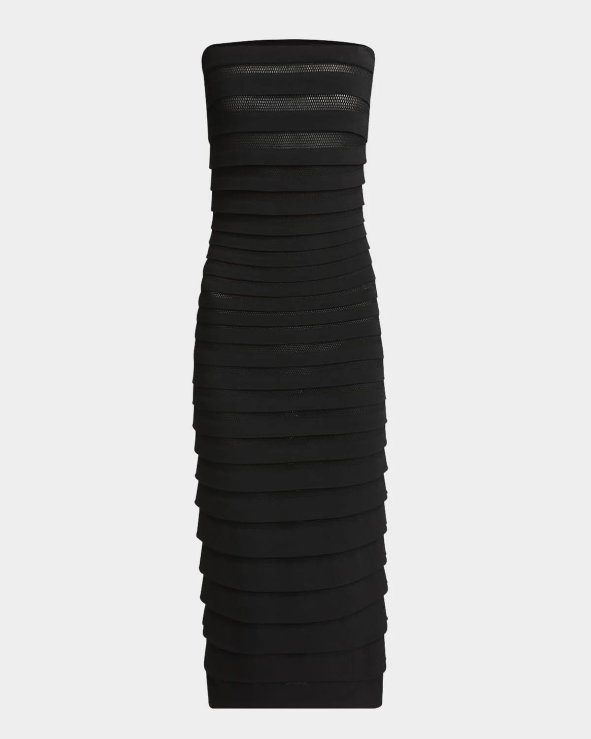 - ALAIA dress in tiered 3D stripe mesh knit - Strapless neckline - Sleeveless - Body-skimming silhouette - Hem falls below the knee - Hidden closure - Viscose/polyester/nylon/polyamide - Made in Italy - Model is 5'10"/177cm.