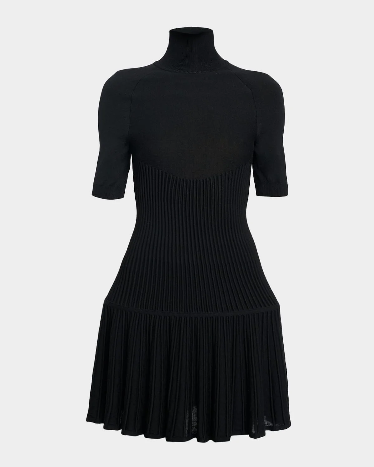 Crafted from a ribbed wool blend, the "Crinoline" dress from ALAIA features a ruffled hemline Turtleneck Short sleeves Hem falls above the knee Fit-and-flare silhouette Slipover style Wool/nylon/polyamide/elastane Dry clean Made in Italy SIZE & FITModel measurements: 5 & apos;10" tallModel is wearing a US size 4/Small