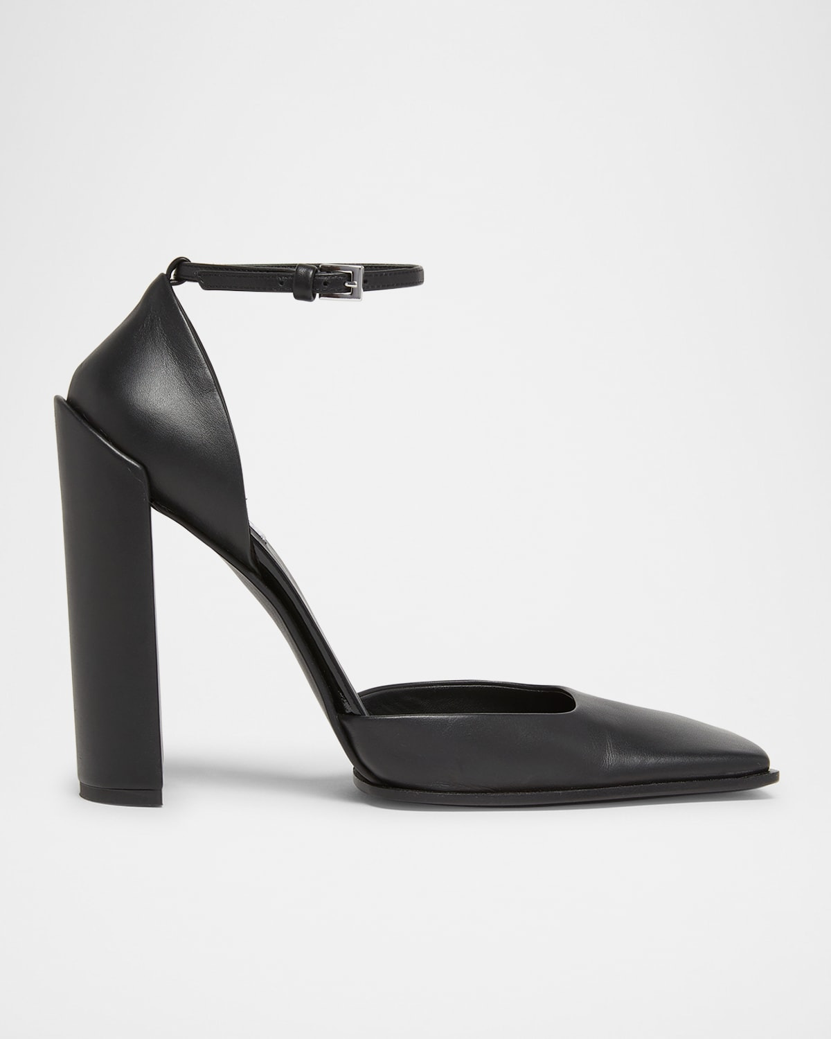 ALAIA d'Orsay pumps in smooth calf leather 3.5" block heel Square toe Buckle ankle strap Leather lining Leather/Rubber outsole Made in Italy