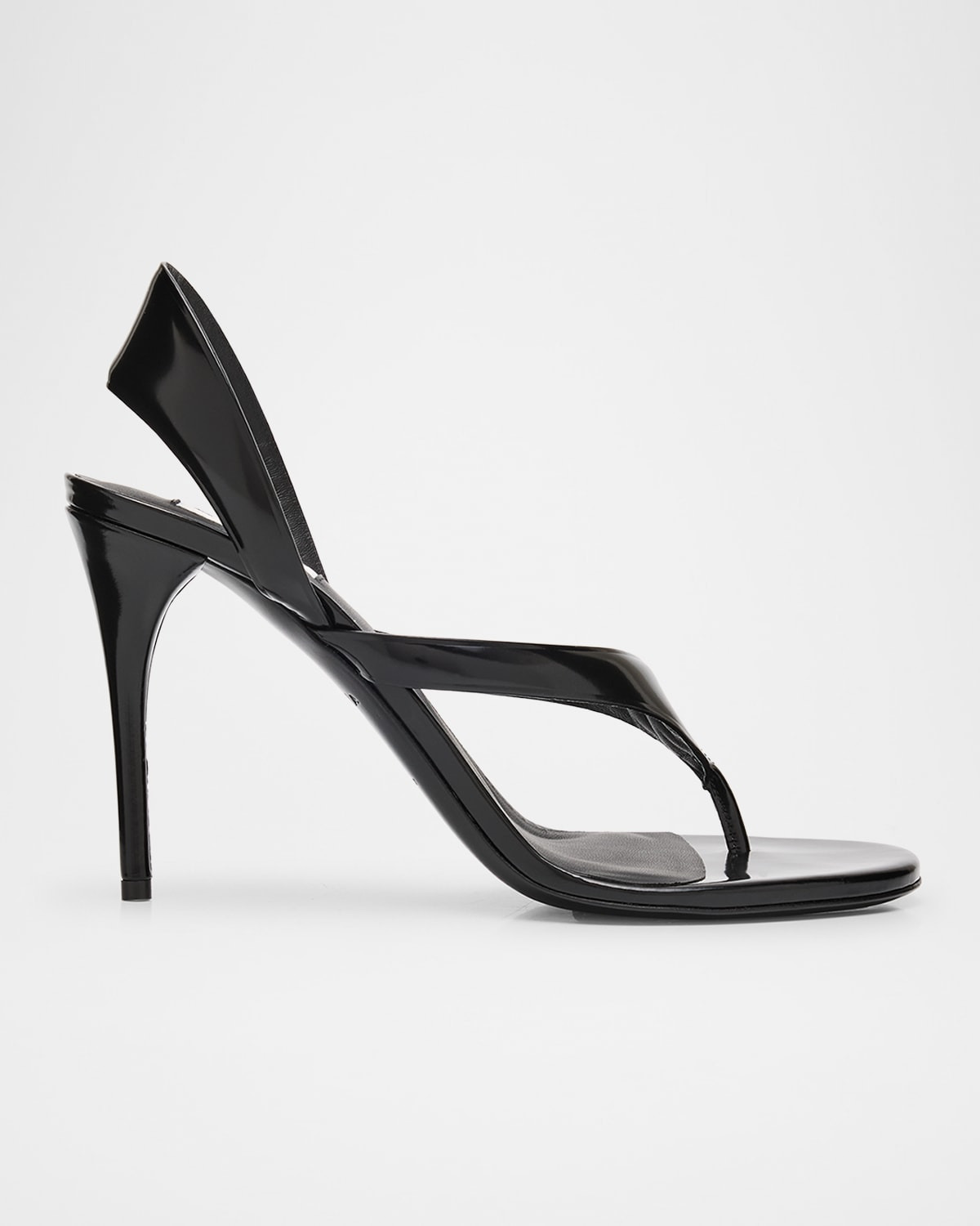 - ALAIA sandals in shiny calf leather - 3.50 in / 90 mm stiletto heel - Open toe - Thong strap - Slingback strap - Leather outsole - Lining: Leather - Professional cleaning recommended - Made in Italy