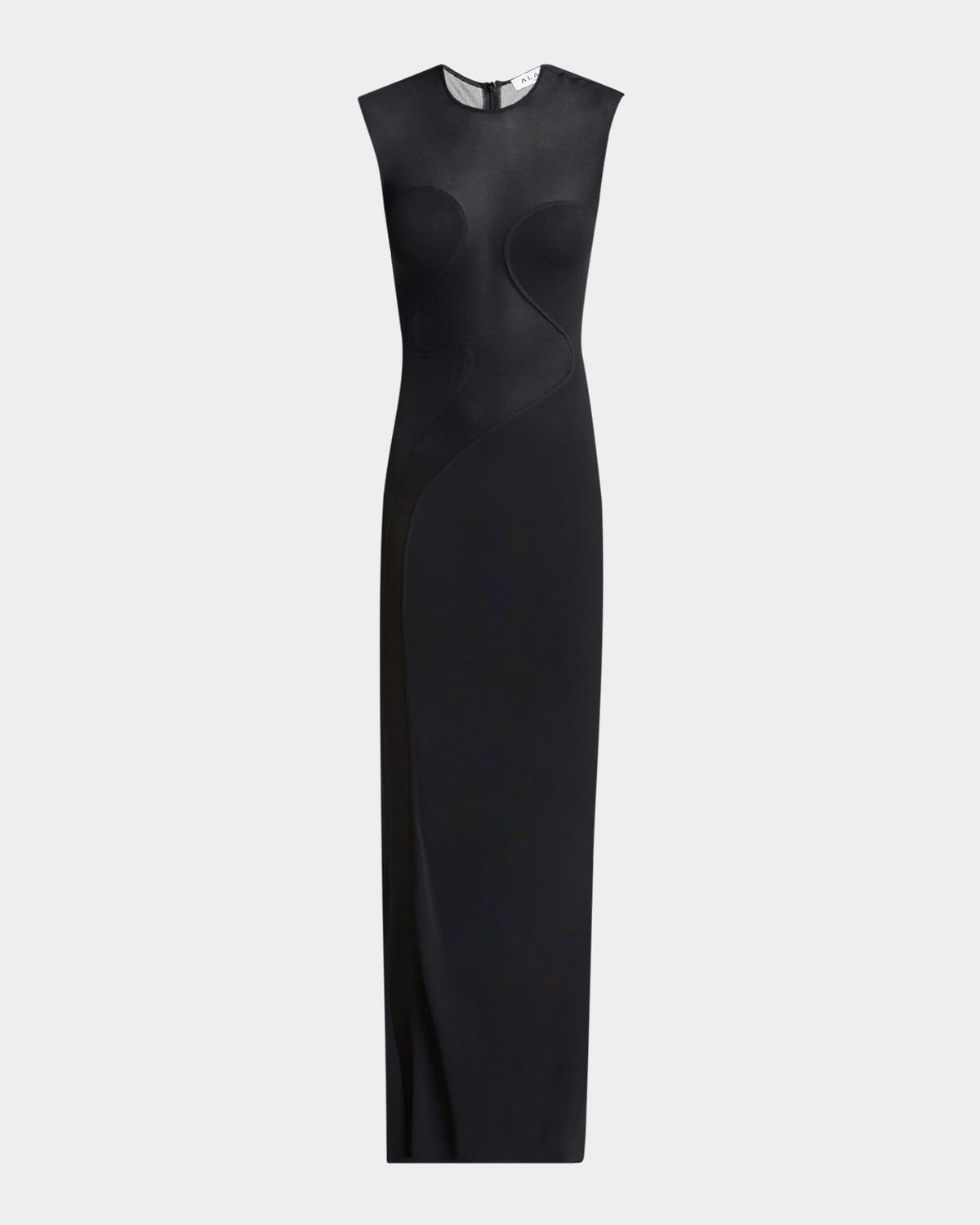 - ALAIA mesh molded gown with cutout detail - Jewel neckline - Cap sleeves - Body-conscious silhouette - Full length - Back zip - Viscose/polyester - Dry clean - Made in Italy
