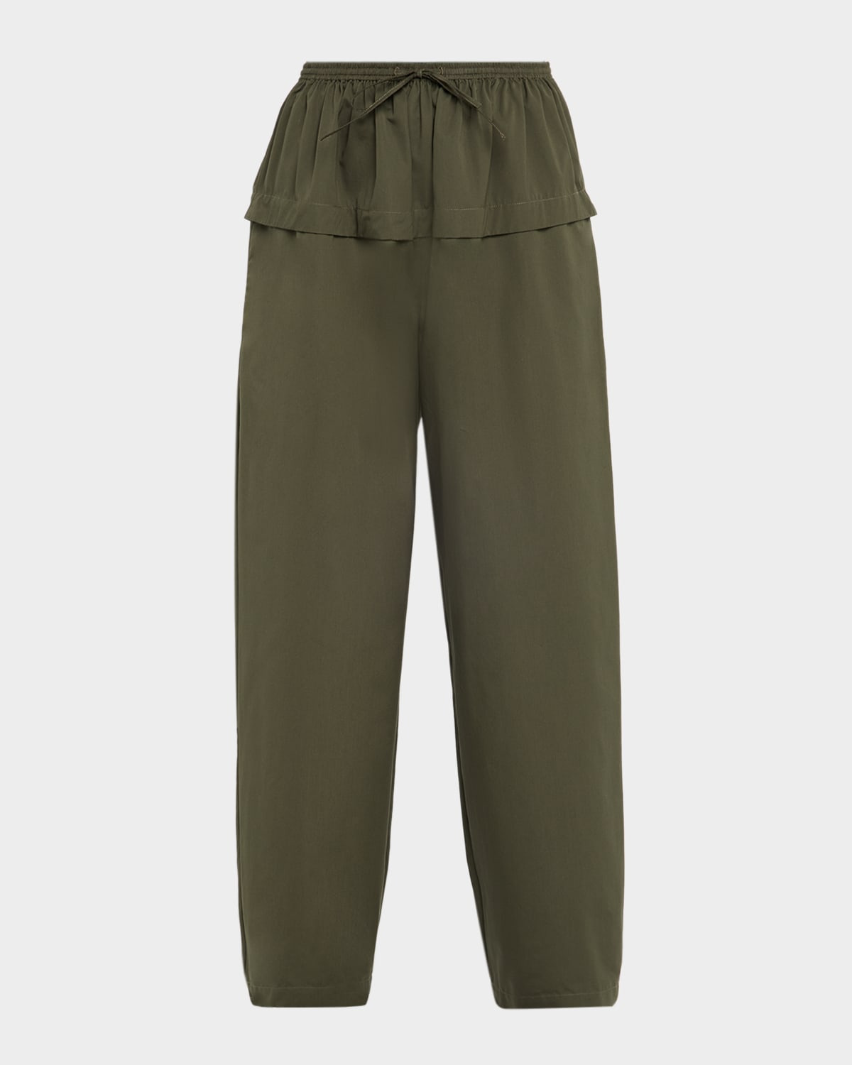 - ALAIA pants featuring a peplum flounce waist detail and a drawstring waistband - Mid rise sits high on hip - Wide legs - Ankle length - Pull-on style - Cotton - Made in Italy