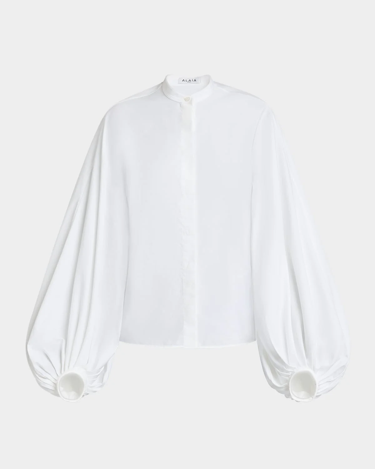 - ALAIA solid blouse - Band collar; button front - Long puff sleeves - Straight fit - Cotton - Dry clean - Made in Italy