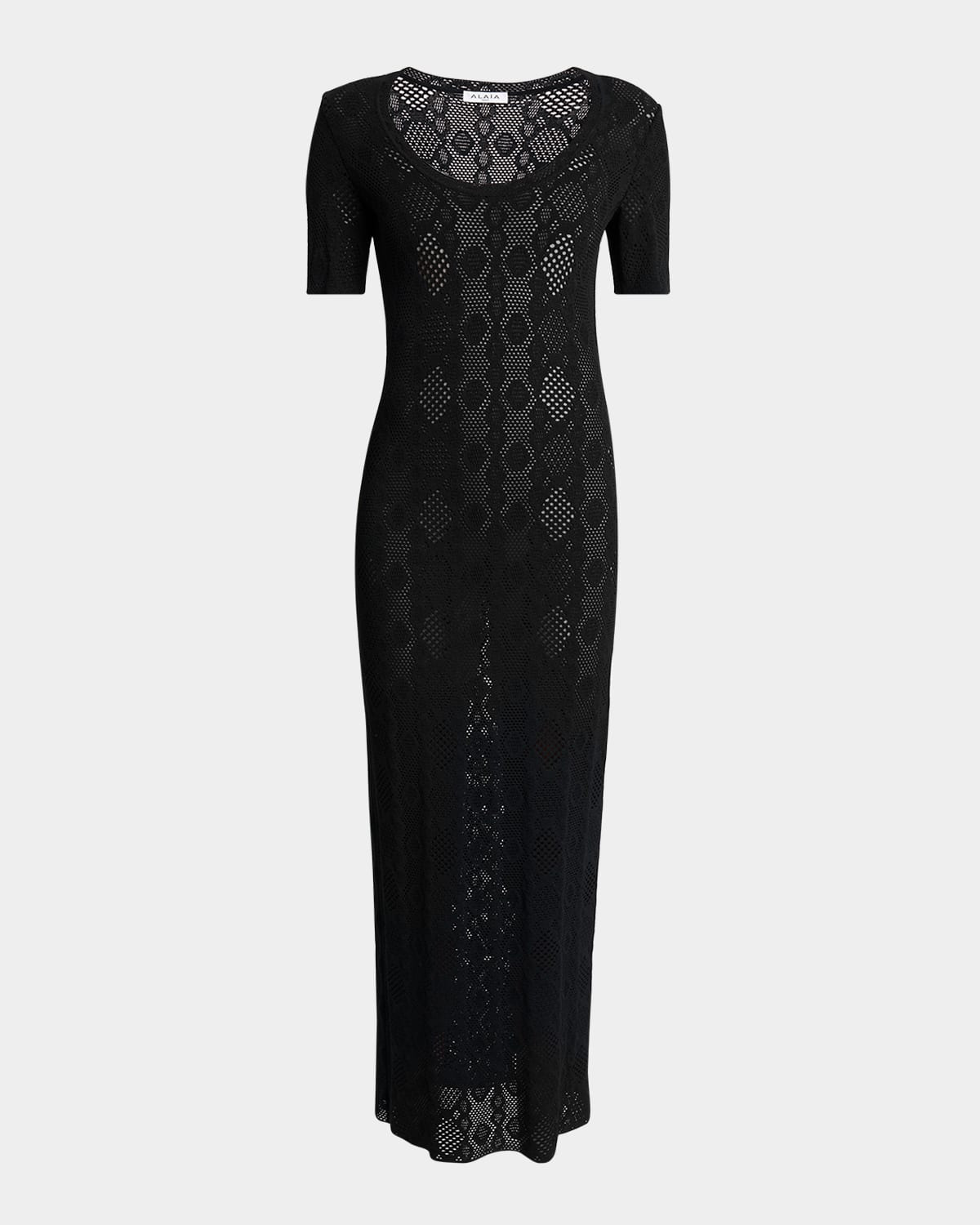 - ALAIA dress in a semi-sheer python-printed lace fabric - Scoop neckline - Short sleeves - Sheath silhouette - Hem falls below the knee - Slipover style - Viscose/nylon/polyamide - Made in Italy