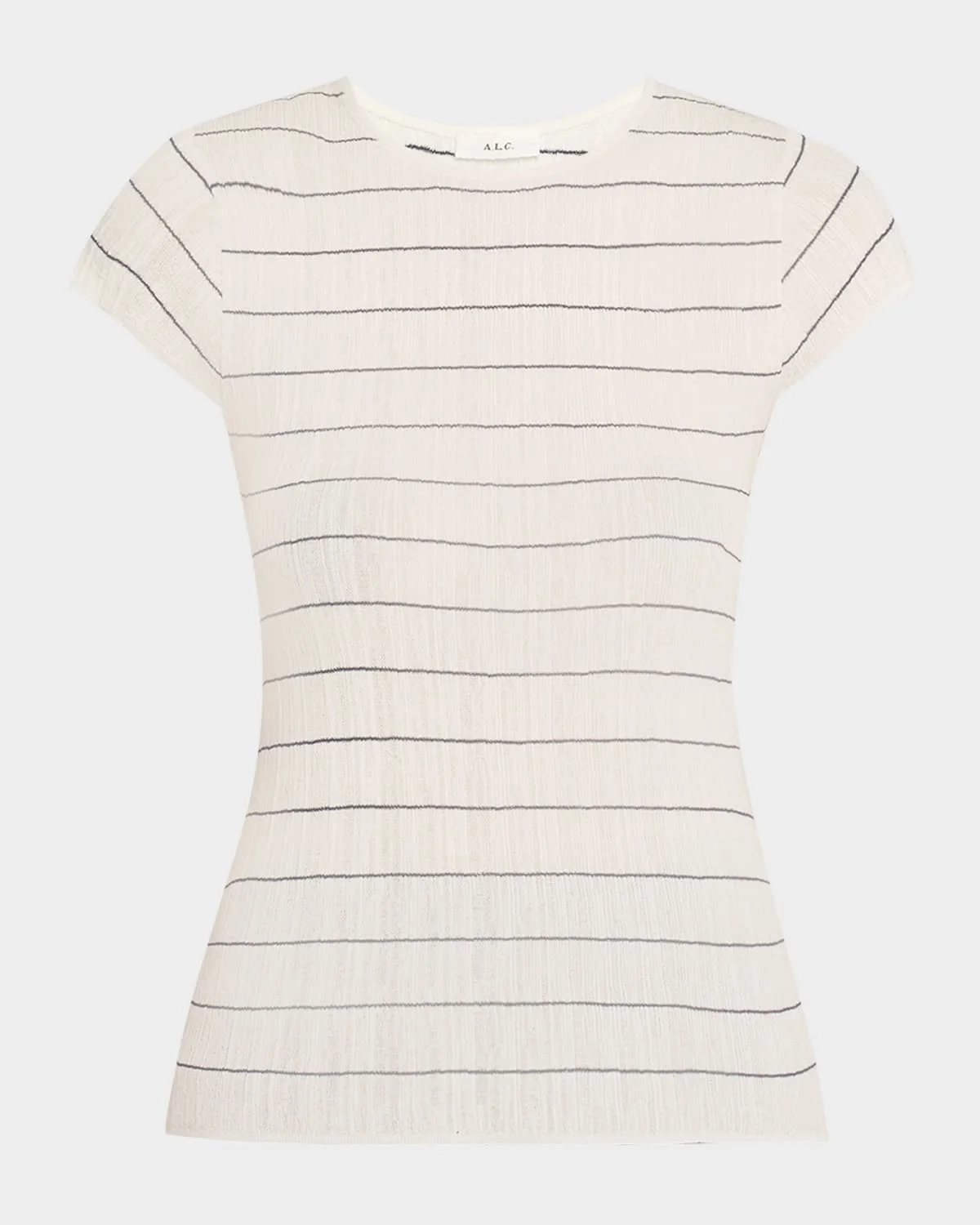 A.L.C. "Sam" striped tee Crew neckline Short sleeves Easy fit Hem sits at the hip Pullover style Cotton/nylon/polyamide Dry clean Imported