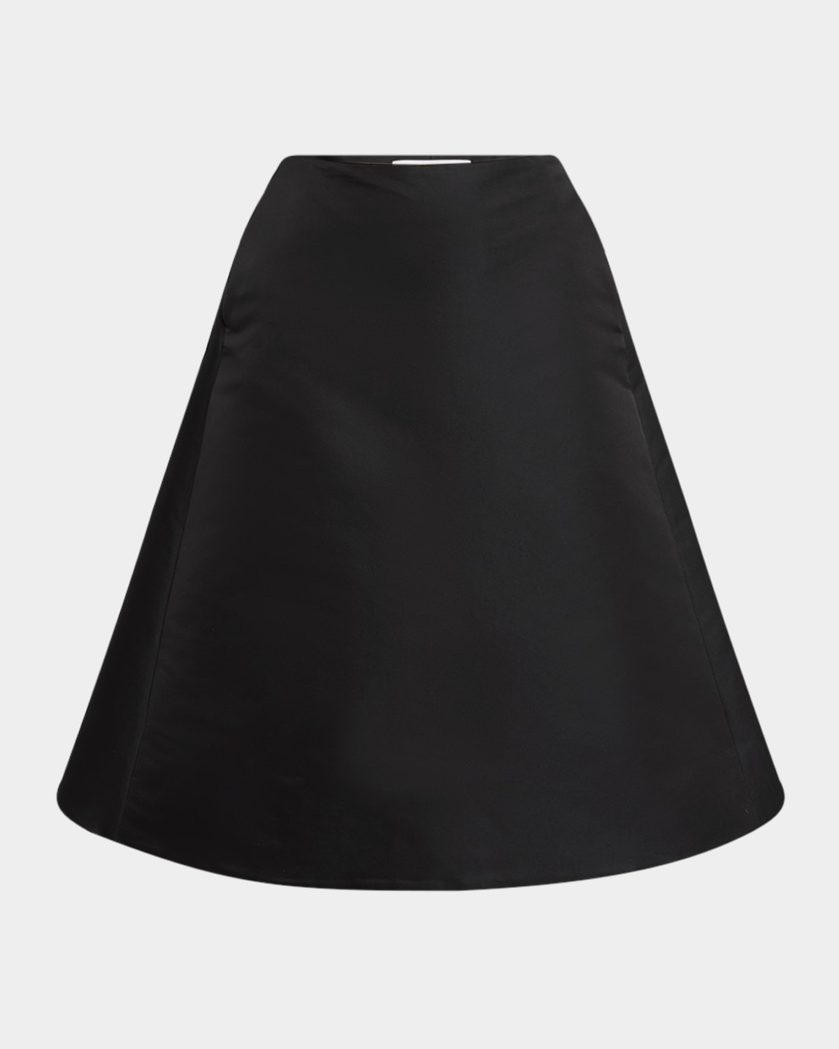 - McQueen circle skirt featuring a high-low hem and side split pockets - High waist - Hem falls below the knee - A-line silhouette - Back zip - Polyester/silk/acetate - Made in Italy