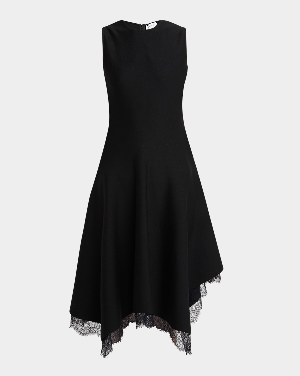 - McQueen knit dress featuring an asymmetric hem embellished with lace - Round neckline - Sleeveless - Fit-and-flare silhouette - Hem falls below the knee - Back zip - Wool/nylon/polyamide/viscose - Made in Italy