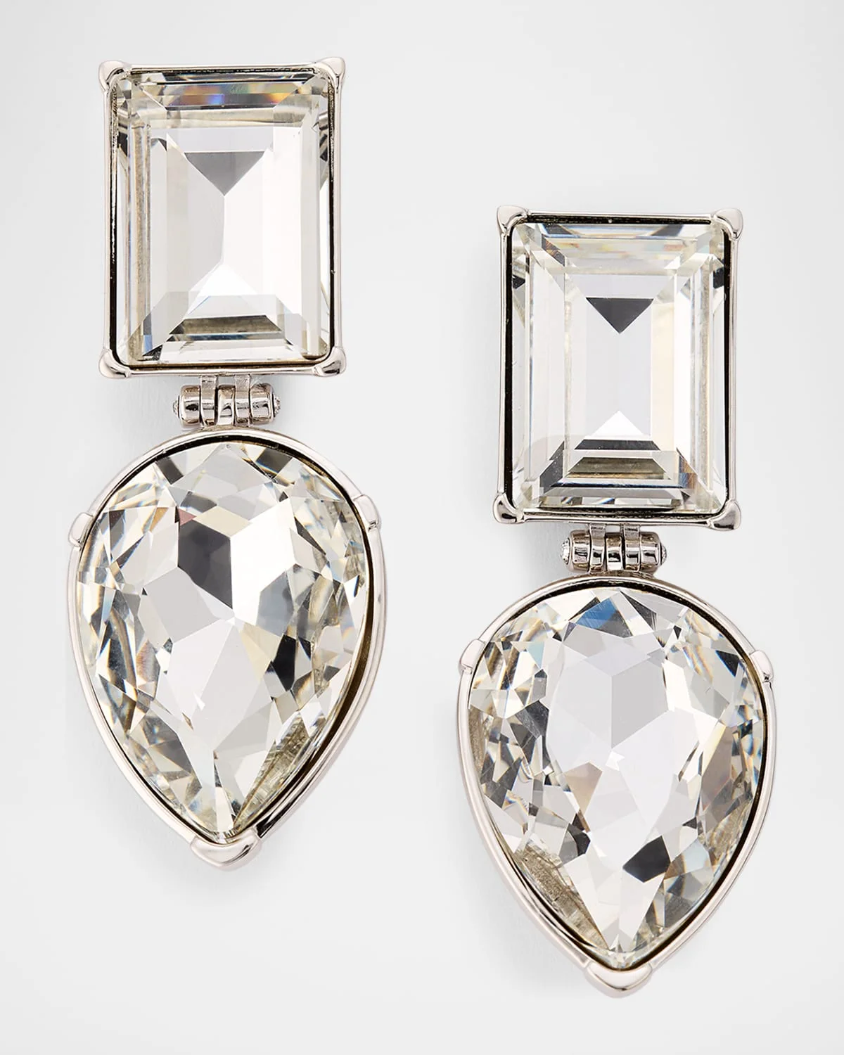 McQueen cocktail earrings with faceted crystals Made from brass with a silvertone finish Emeraldcut and pearcut crystals Postbacks for pierced ears Made in Italy