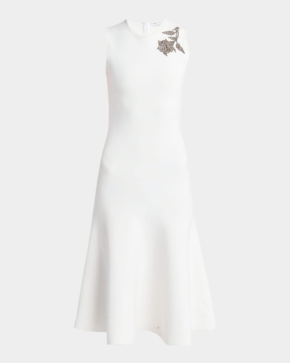 Crystal Embroidered Sleeveless Flared Midi Dress