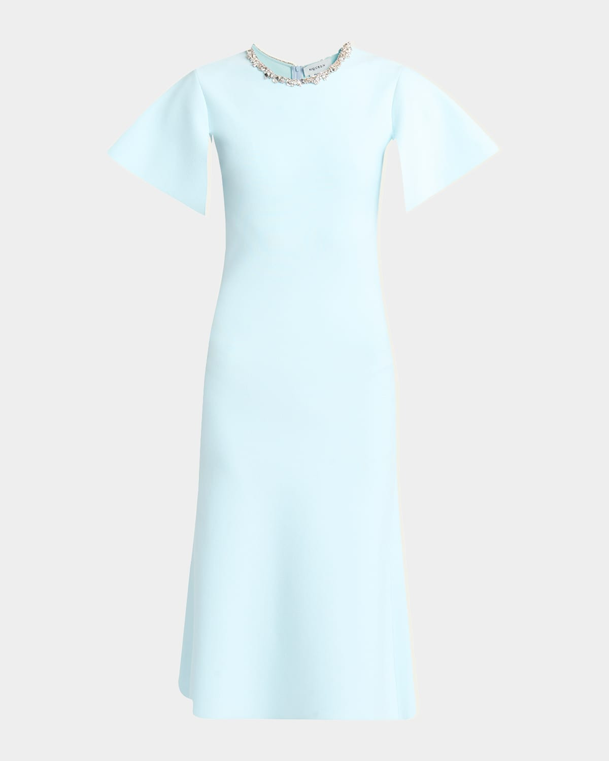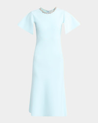 Crystal Neck Short-Sleeve Knit Midi Dress