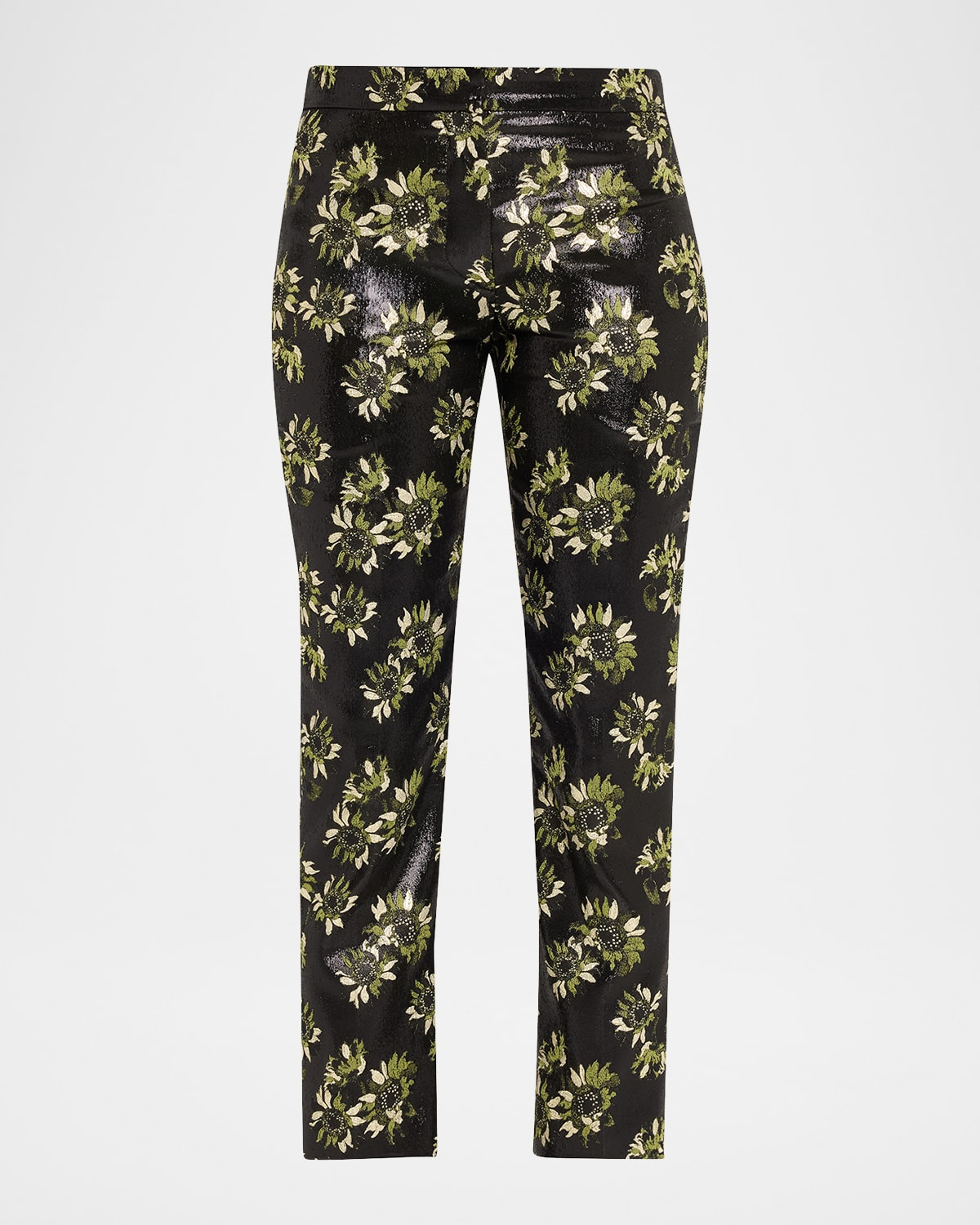 Lacquered Sunflower Jacquard Slim-Leg Ankle Pants