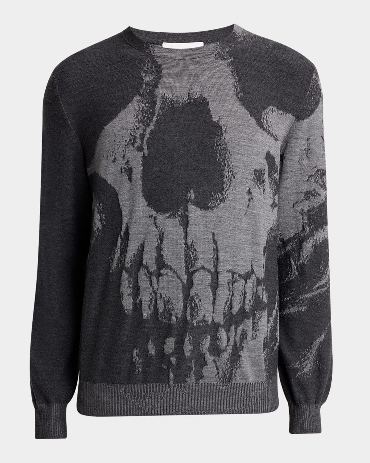 - McQueen sweater with exploded skull print on front - Crew neckline - Long sleeves - Ribbed cuffs and waistband - Pullover style - Wool - Made in Italy
