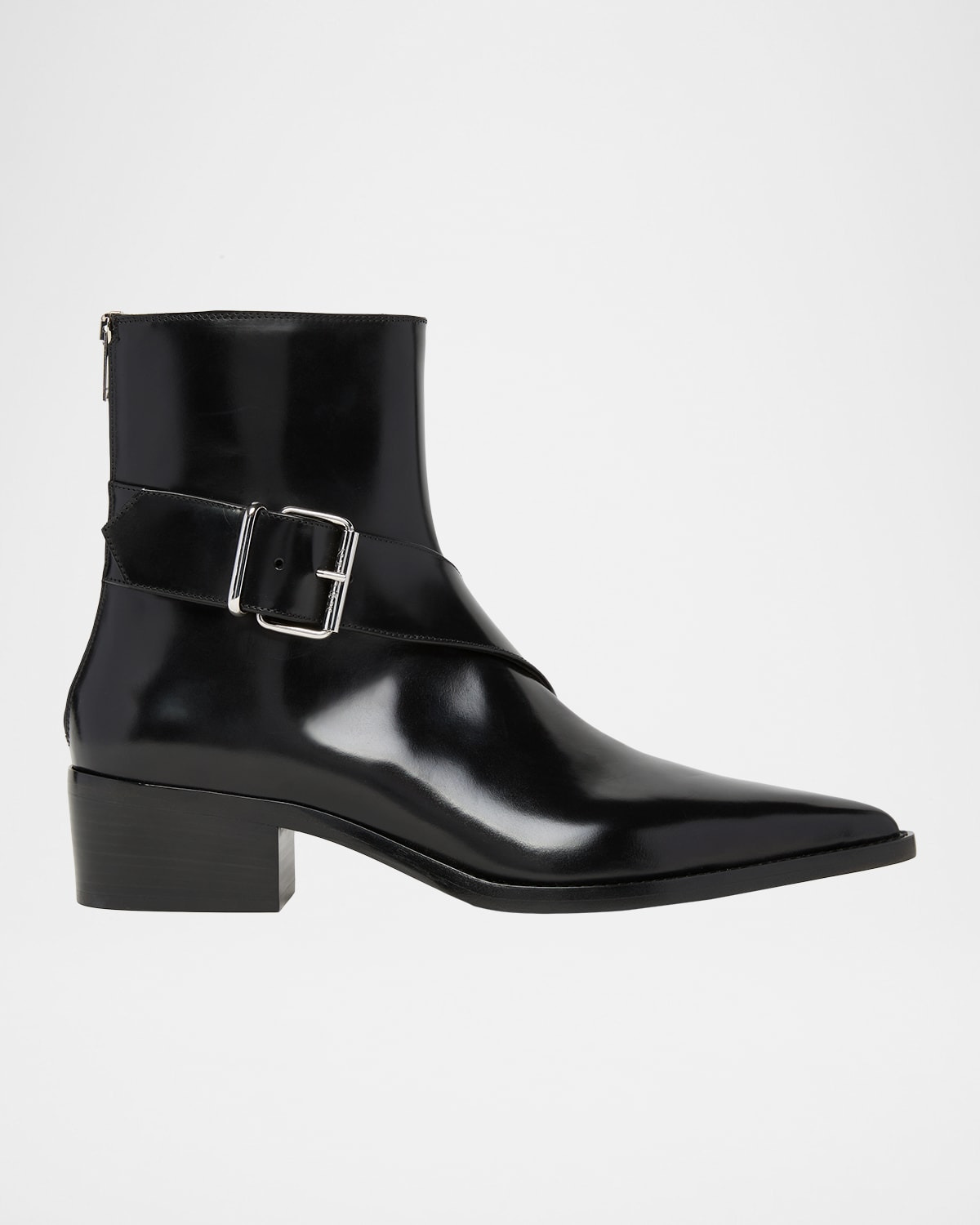 Men's Leather Buckle-Strap Zip Ankle Boots