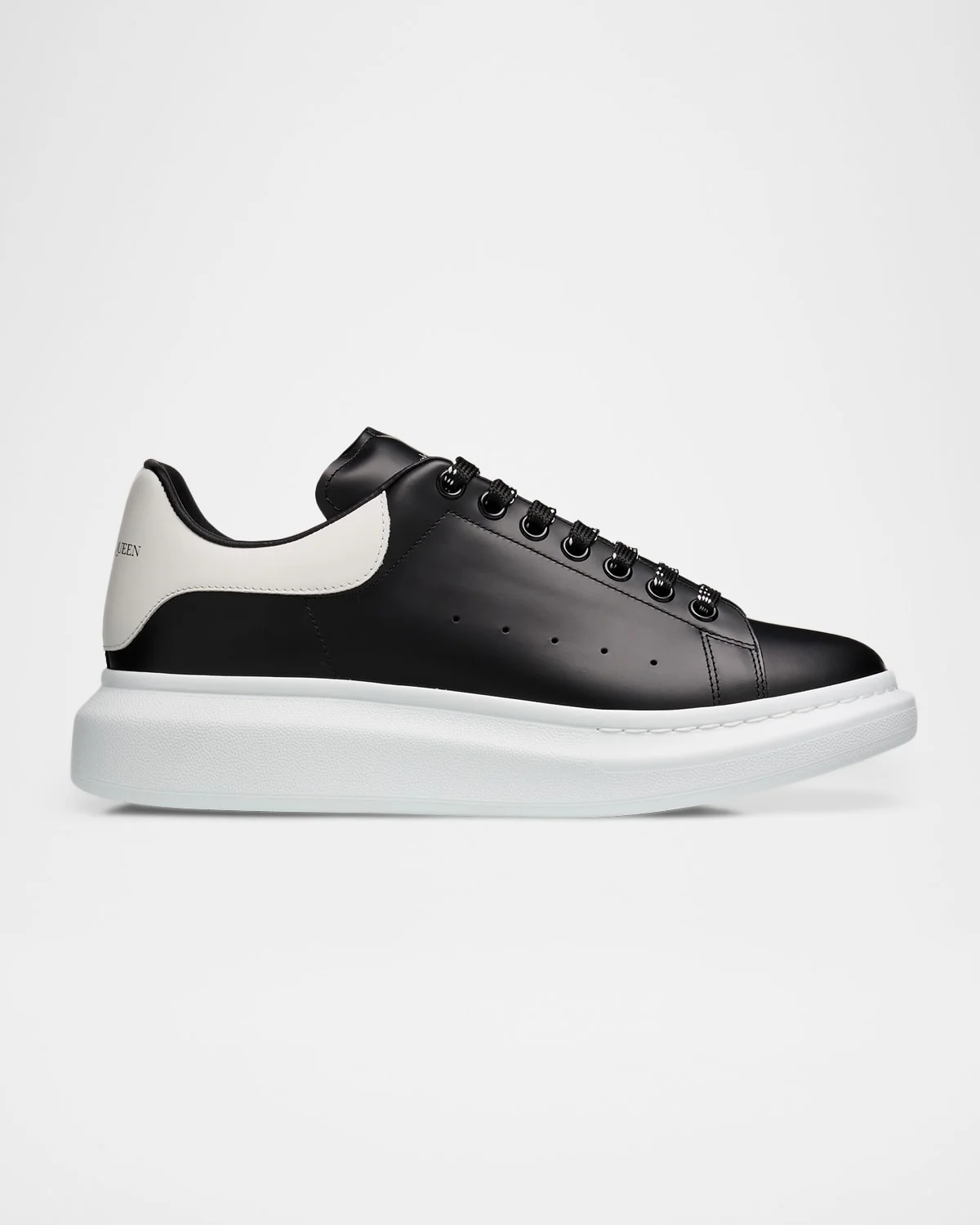 - McQueen "Larry" low-top sneakers in leather - Flat heel - Round toe - Lace-up vamp - Logo on tongue and backstay - Oversized rubber outsole - Made in Italy
