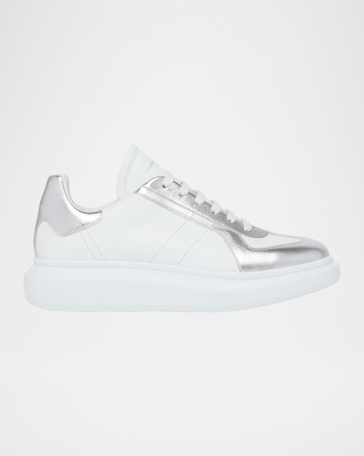- McQueen sneakers in smooth leather, highlighted with contrasting metallic trim - Flat heel - Round T-toe - Lace-up vamp - Tongue and backstay logo - Padded collar - Rubber outsole - Spot clean - Made in Italy