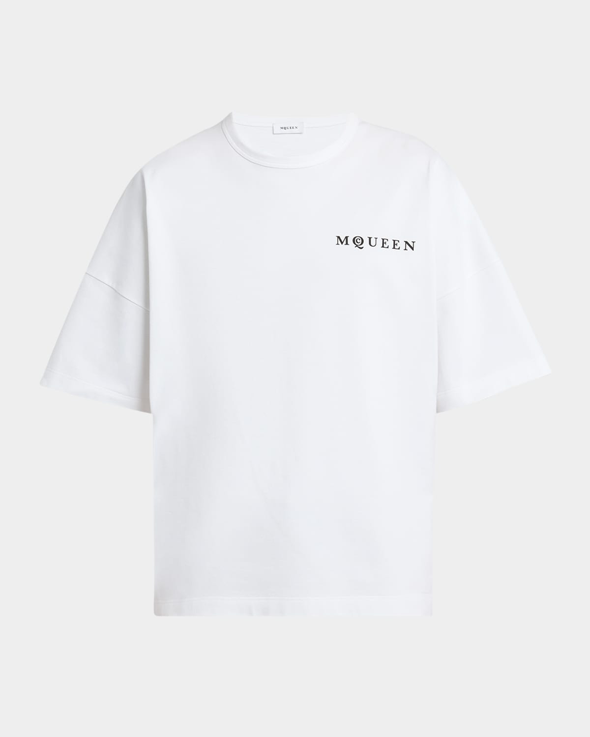 - McQueen T-shirt with logo prints on chest and back - Crew neckline - Short sleeves - Relaxed fit - Pullover style - Cotton - Dry clean - Made in Italy