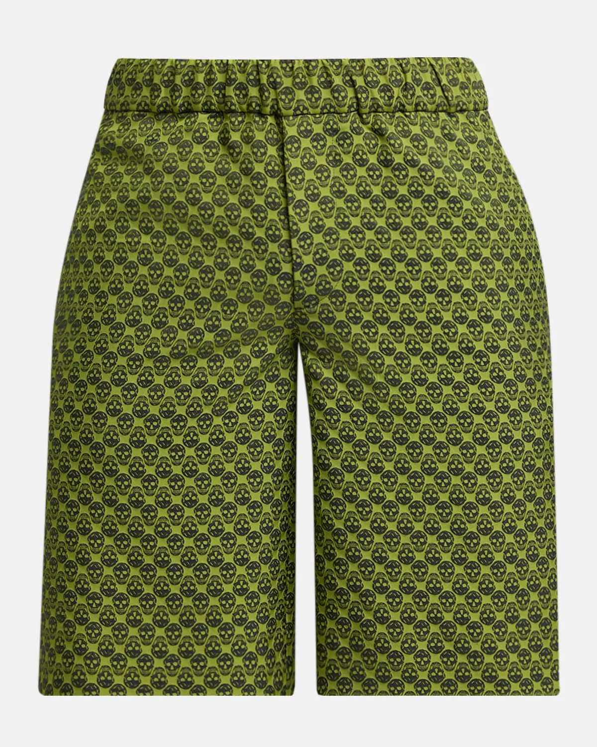 McQueen pyjama shorts in skull jacquard pattern Regular rise Elasticized waist Side pockets; back welt pockets Knee length Loose fit Viscose/polyester Dry clean Made in Italy