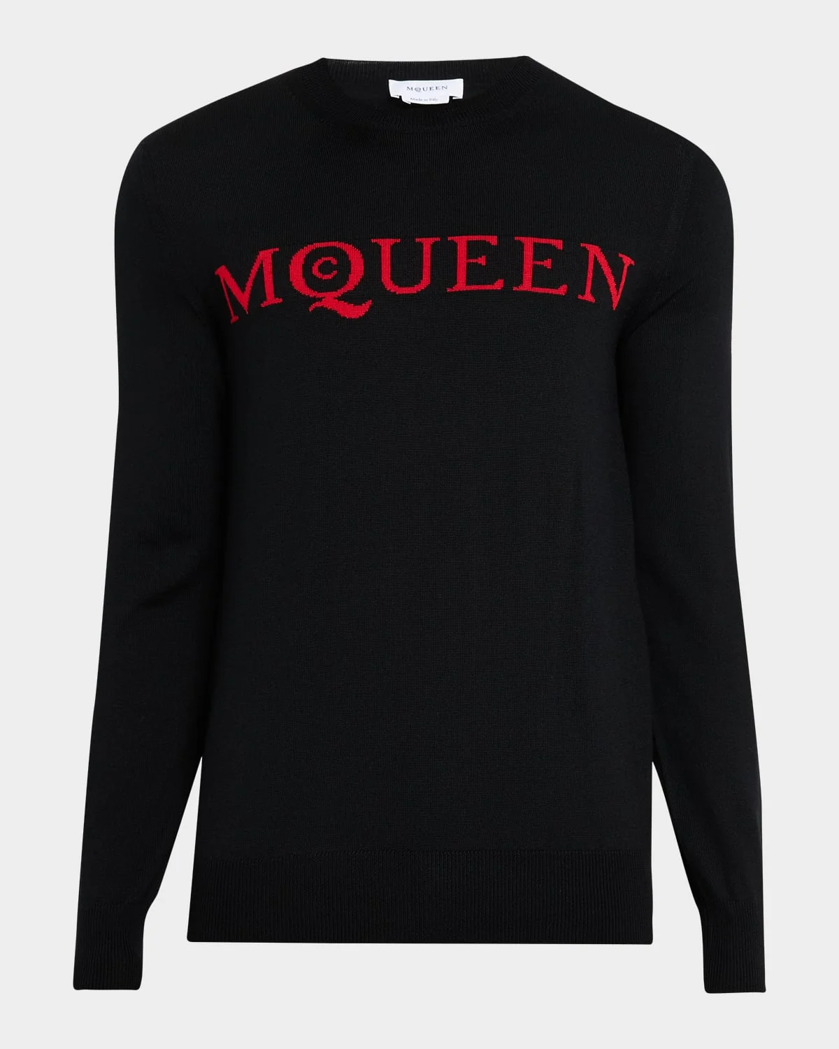 McQueen sweater in premium wool stylized with iconic jacquard logo lettering across the chest Crew neckline Long sleeves Ribbed cuffs and hem Pullover style Wool Dry clean Made in Italy