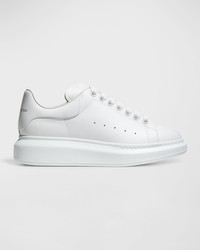 McQueen leather sneakers. 0.8" flat heel with platform. Round toe. Laceup vamp. Perforated side. Logo at tongue and backstay. Leather lining. Rubber outsole. Runs small, order one size up. Made in Italy.