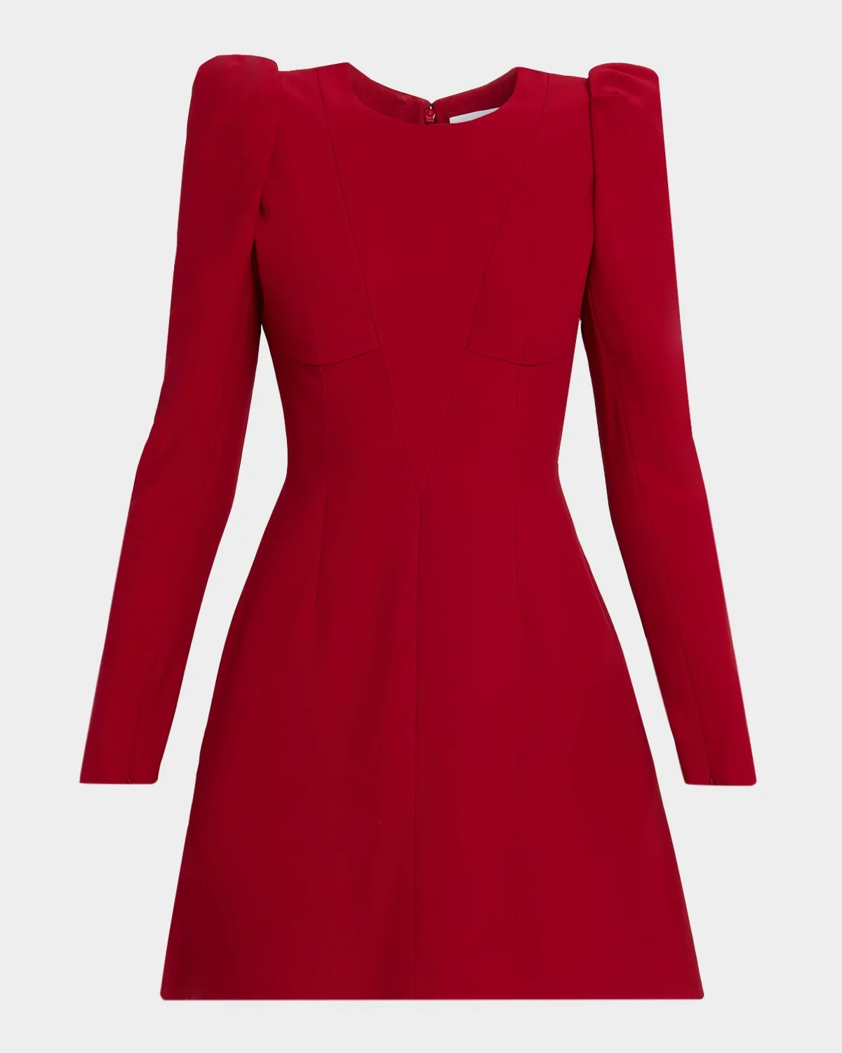 McQueen dress is crafted of certified leaf crepe featuring dynamic puff shoulders and bustierlike seaming details Round neckline Long puff sleeves Side split pockets Aline silhouette Mini length Invisible back zip Viscose/acetate Dry clean Made in Italy