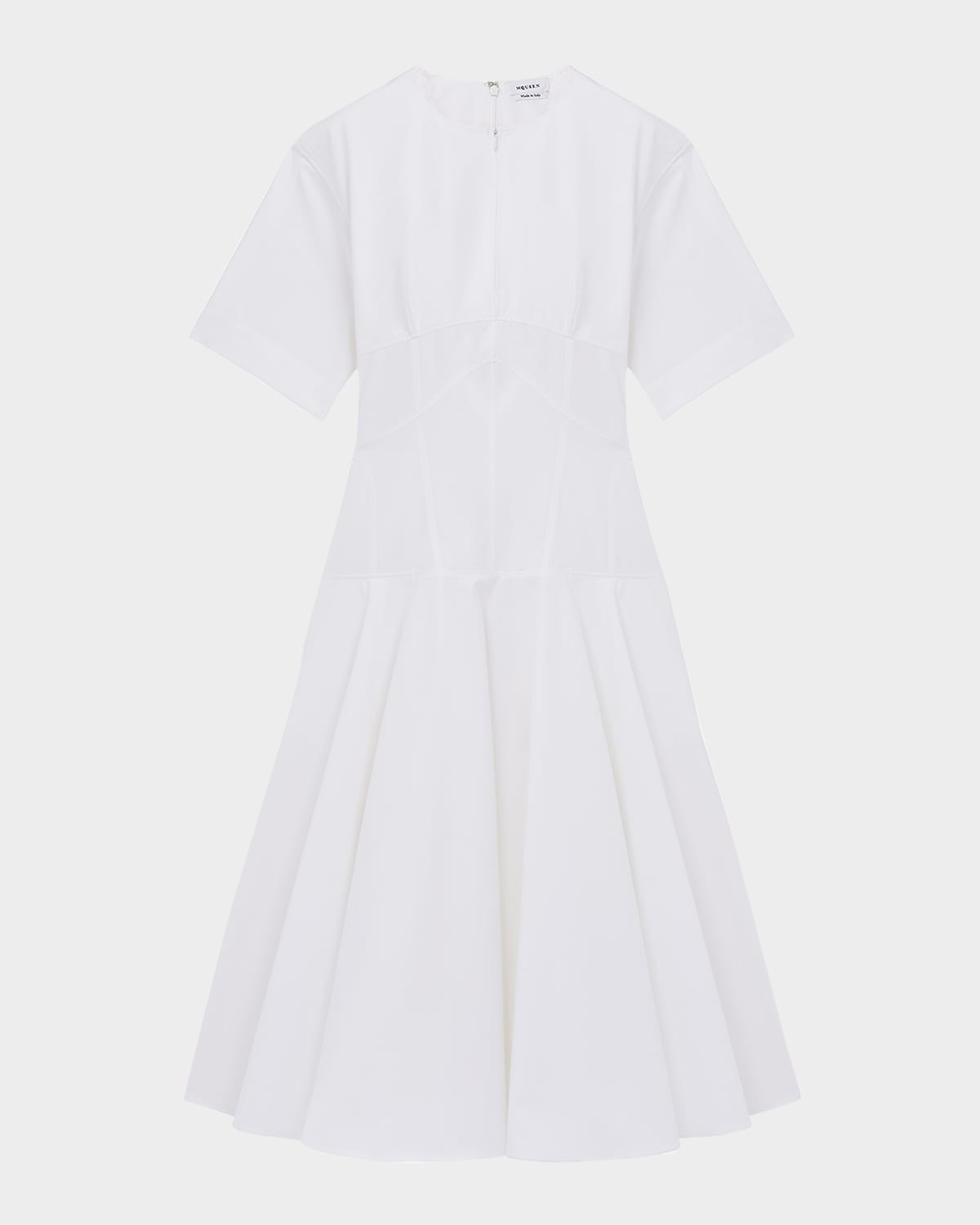 - McQueen cotton midi dress finished with a zipped corset-style bodice to accentuate the waist - Round neckline - Short sleeves - Drop-waist silhouette - Hem falls below the knee - Center back zip - Cotton - Made in Italy