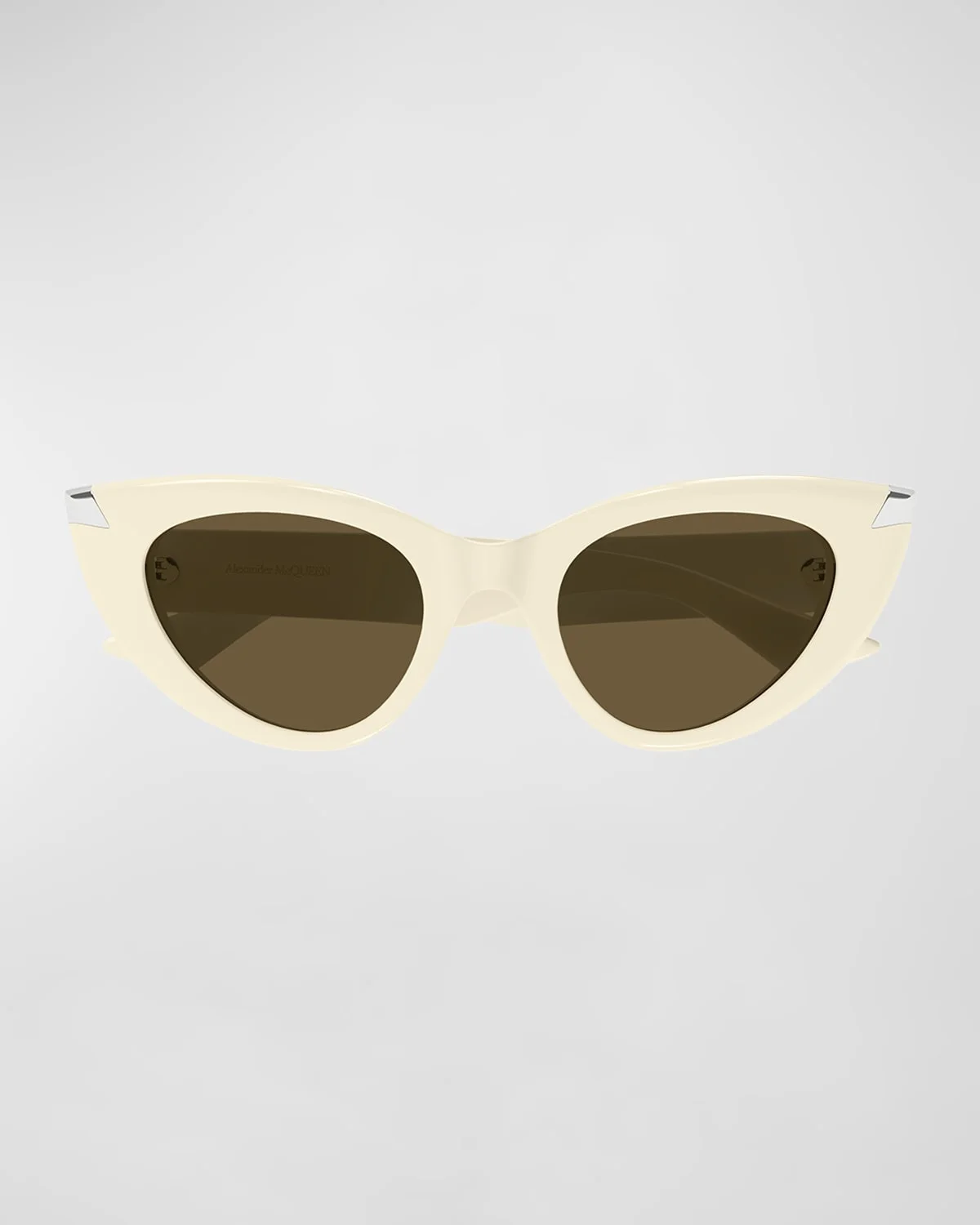 - McQueen "AM0442S" cat-eye sunglasses in acetate - Lens/bridge/temple (in mm): 50-21-135 - Silver accents on the frames - Saddle nose bridge - Logo on temples - Wide, tapered arms - 100% UVA/UVB protection - Made in Italy - Proposition 65 warning for California residents