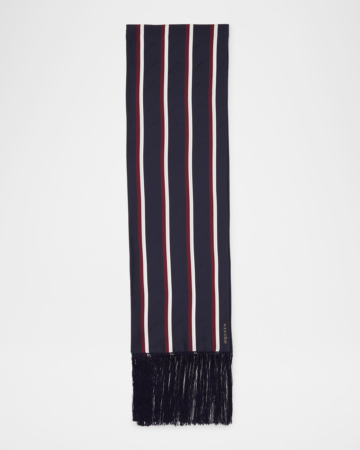 - McQueen twill collegiate-inspired scarf - Approx. 11"L x 71.0"W - Fringe trim - Can be styled multiple ways - Silk - Dry clean - Made in Italy