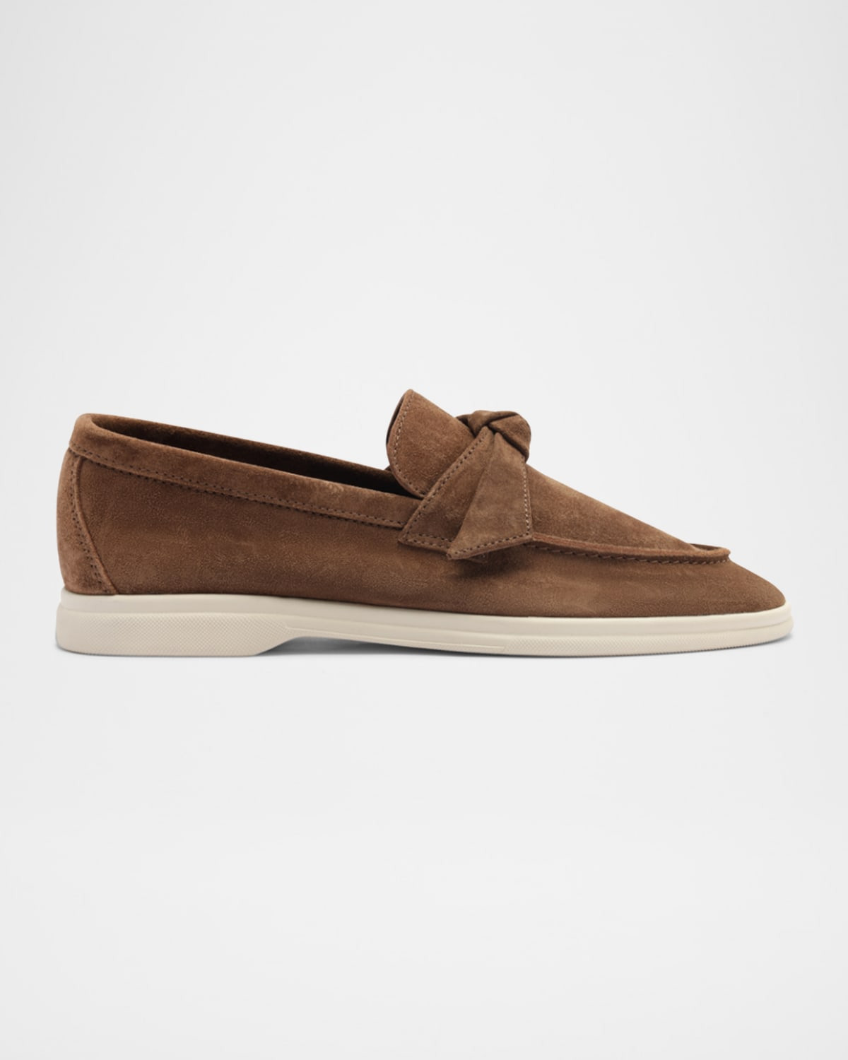 - Alexandre Birman "Clarita" loafers in calf suede - 0.50 in / 15 mm flat heel - Round moc toe - Notched vamp with knotted strap - Slip-on style - Leather outsole - Lining: Leather - Leather method dry cleaning - Made in Italy