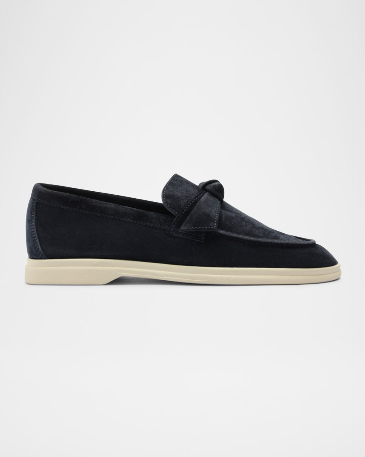 Alexandre Birman "Clarita" loafers in calf suede 0.50 in / 15 mm flat heel Round moc toe Notched vamp with knotted strap Slipon style Leather outsole Lining: Leather Leather method dry cleaning Made in Italy