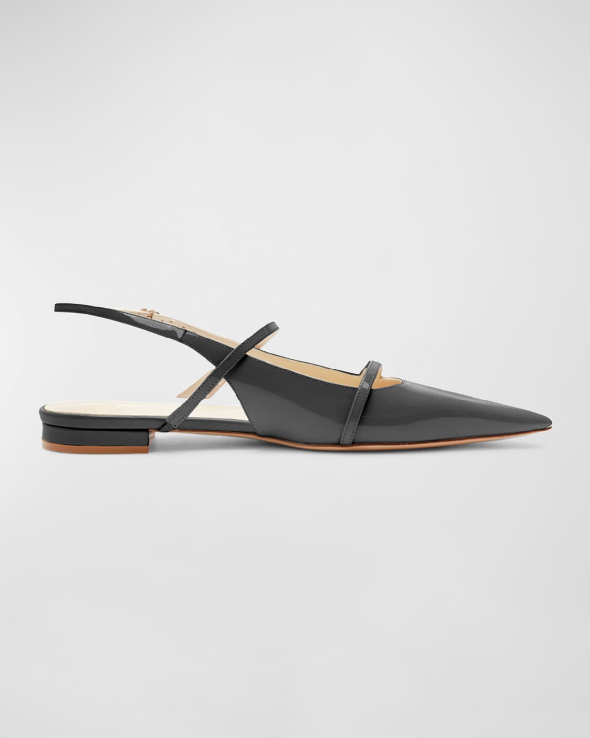 - Alexandre Birman "Tita" patent leather ballerina flats - 0.75 in / 20 mm flat heel - Pointed toe - Dual strap vamp - Adjustable slingback strap - Leather outsole - Lining: Leather - Spot clean - Made in Italy