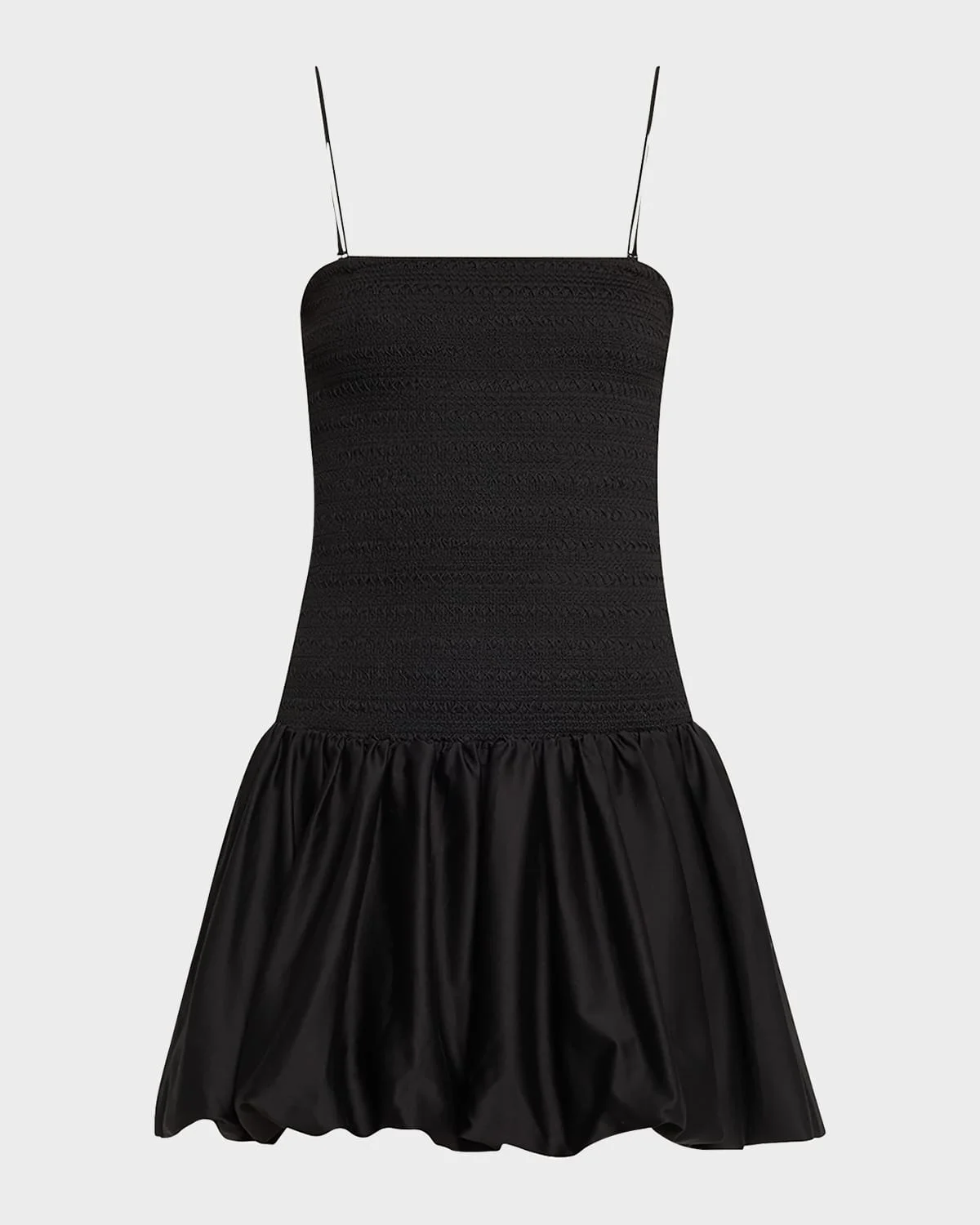 Alice + Olivia "Arden" dress consists of a delicatelysmocked bodice and a voluminous bubble skirt Square neckline Detachable spaghetti straps Hem falls above the knee Drop waist Center back zipper Polyester Lining: Recycled polyester/elastane Imported