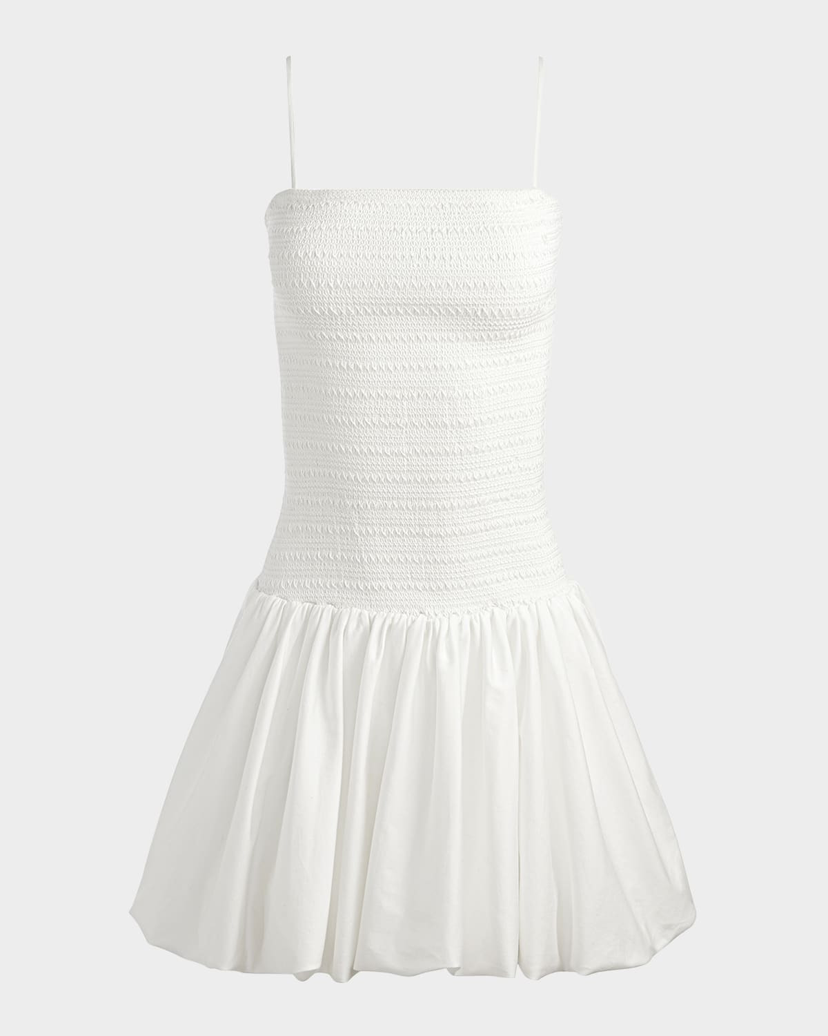 - Alice + Olivia "Arden" dress consists of a delicately-smocked bodice and a voluminous bubble skirt - Square neckline - Detachable spaghetti straps - Hem falls above the knee - Drop waist - Center back zipper - Polyester - Lining: Recycled polyester/elastane - Imported