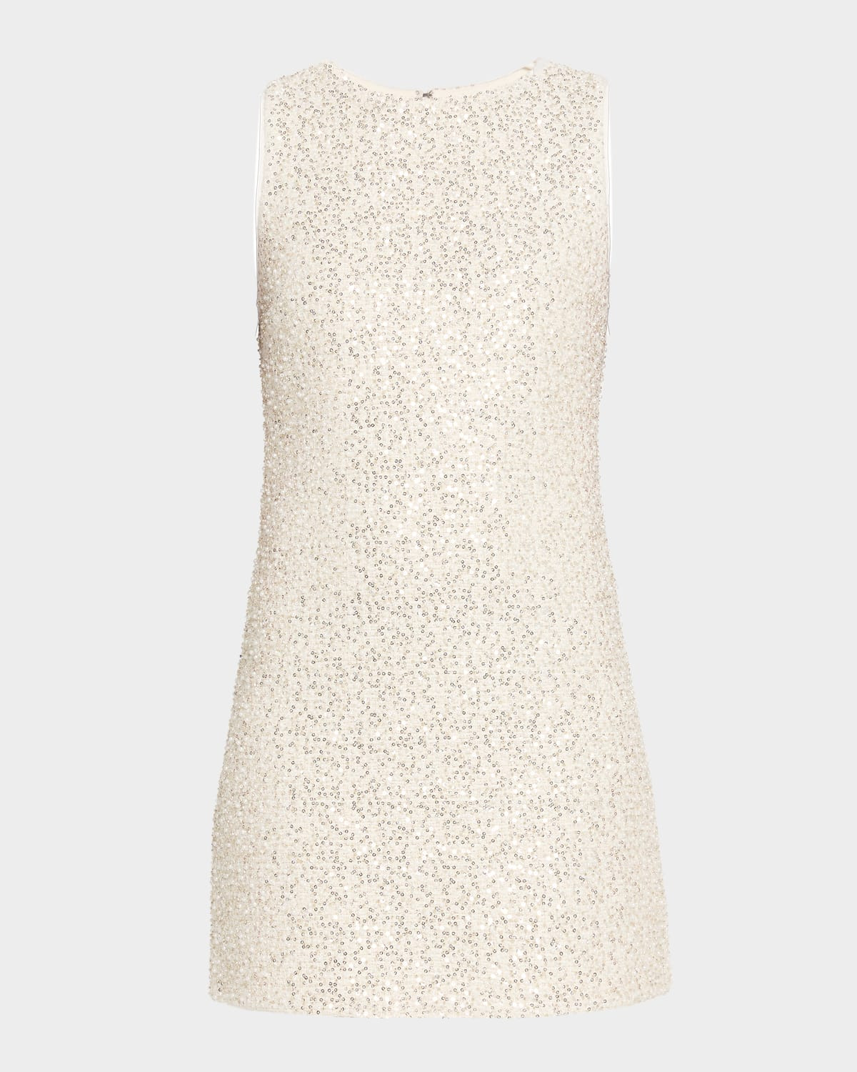 Made from intricately woven tweed, the "Cade" dress by Alice + Olivia is embellished with allover sequins for a hint of sparkle Approx. 33"L from shoulder to hem Jewel neckline Sleeveless Hem falls above the knee Bodycon fit Center back zipper Polyester Lining: Recycled polyester Dry clean Imported