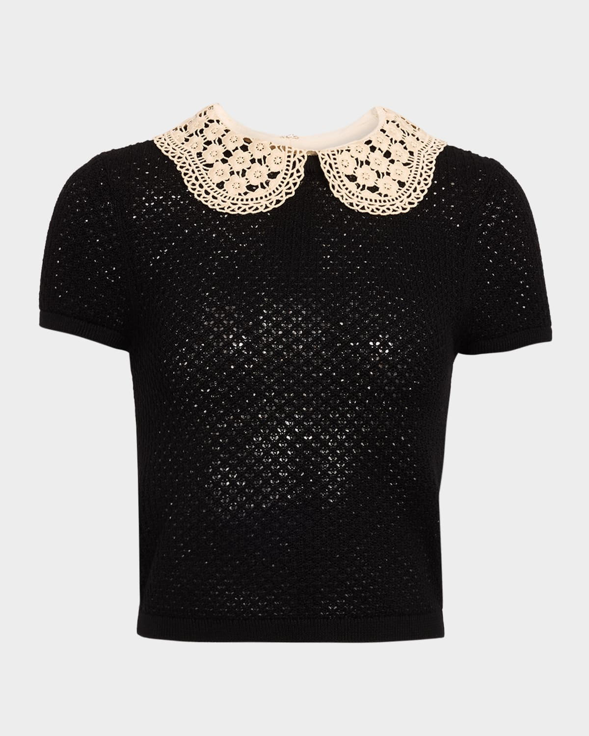 crochet-collar short-sleeve top