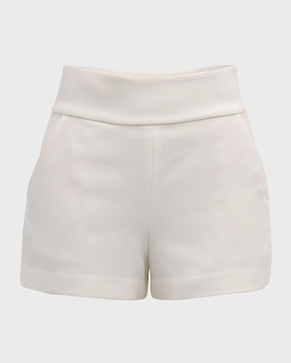 - Alice + Olivia "Donald" vintage-inspired shorts - Approx. 2.8" inseam - High-rise thick waistband - Side seam pockets - Center back zipper - Polyester/viscose/elastane - Lining: Cupro - Dry clean - Imported - Model is 5'10"/177cm.